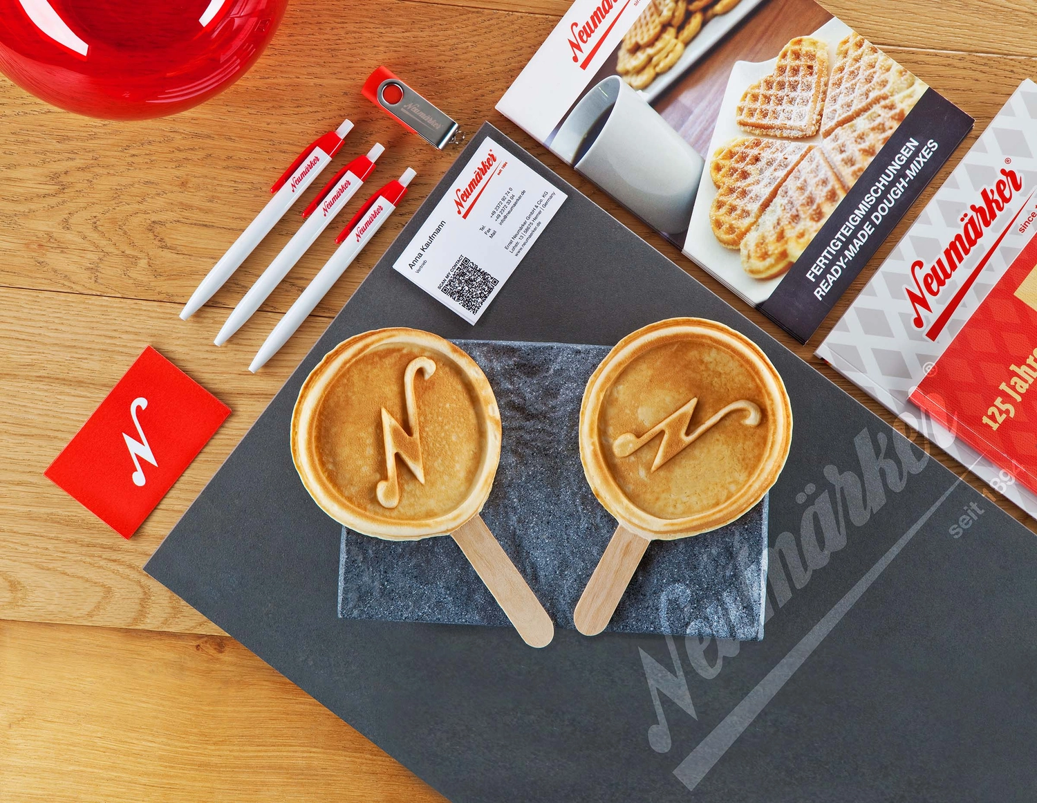 - Individuelle Logo-Waffeln für jeden Anlass: Gestalten Sie Ihre Waffel mit einem Text oder Motiv für bestimmte Anlässe, als eigene Logo-Waffel für Ihre Gastronomie oder mit Ihrem Business-Logo für Marketing und Promotion. Ihre Markenbotschaft wird sichtbar, erlebbar und genussvoll vermittelt. Das Entwicklungsteam von Neumärker gestaltet das Design gemeinsam mit Ihnen und testet es in der Praxis. Die Entwicklungszeit bis zur Auslieferung beträgt ca. 3 Monate.