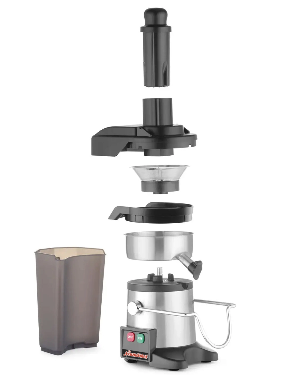 Neumärker Zentrifugalentsafter Juice MakerProfessioneller Zentrifugalentsafter für Gastronomie, Hotellerie, Großküchen und andere gewerbliche Anwendungen, in denen Frische zählt. Der Hochgeschwindigkeitsmotor verarbeitet mühelos große Mengen an Obst und Gemüse zu köstlichen Säften: effizient, aromatisch und vitaminschonend. Dank des großen Auffangbehälters kann über längere Zeit effizient und ohne Unterbrechung gearbeitet werden.